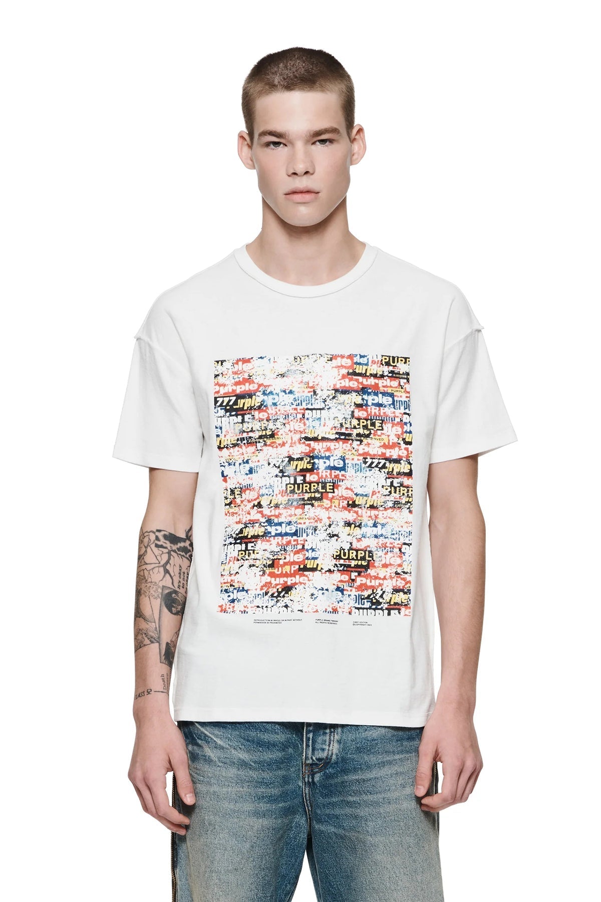 This short-sleeved tee is a premium green jersey knit cut from 100% cotton. This heavyweight style is faded throughout and features contrast Purple Brand logo block lettering across the chest. It’s tailored to a relaxed fit for elevated comfort and comes finished with a classic crewneck collar.